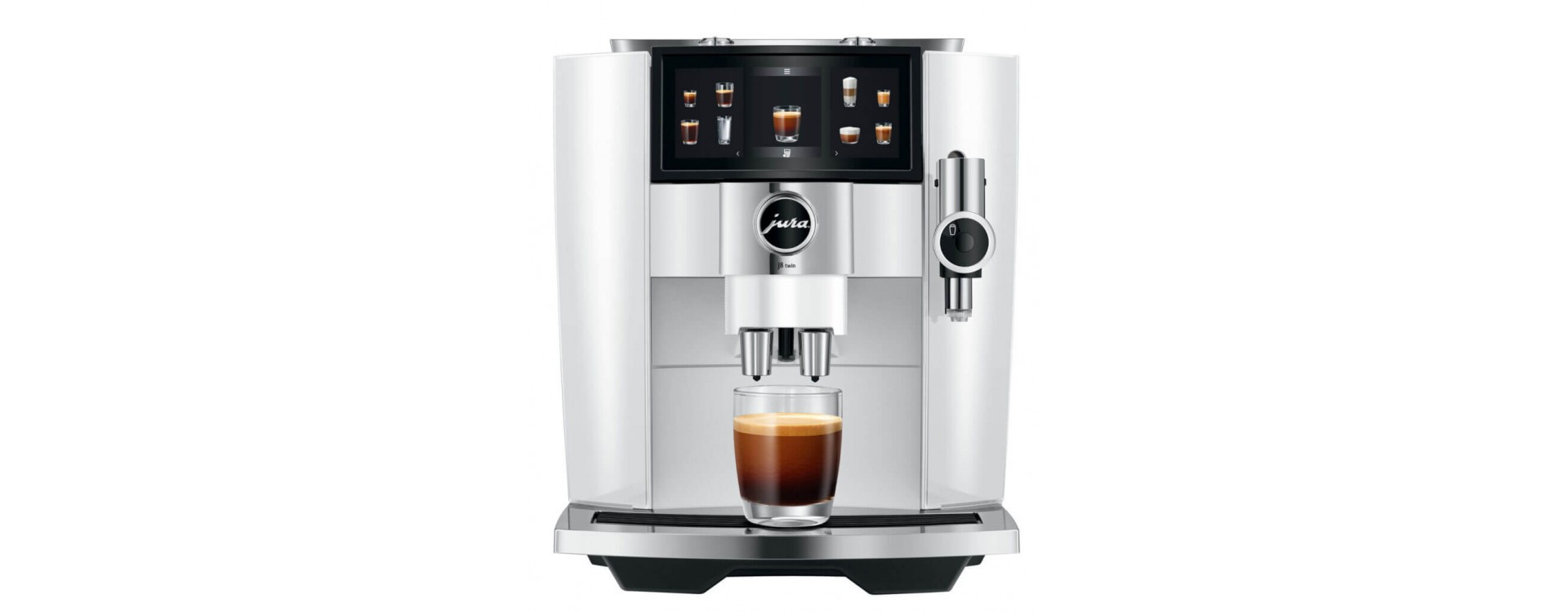 Met het Panorama Coffee Panel van de J8 twin wordt het gebruik van alle functies intuïtief eenvoudig. De Easy Mode maakt aanpassingen aan de koffiespecialiteiten gemakkelijk met schuifregelaars, terwijl assistentiesystemen, zoals de aromacontrole, de bediening nog verder vereenvoudigen. De slimme kopjessensor plaatst de kopjes altijd perfect onder de uitloop, terwijl reiniging en onderhoud met één druk op de knop worden uitgevoerd.